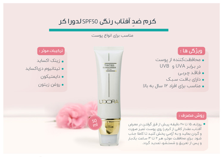 کرم ضدآفتاب بی رنگ لدورا کر ۸۰ میل +SPF50