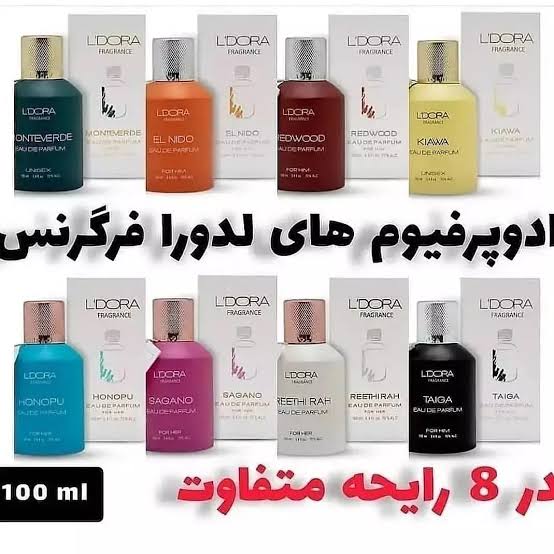 ادوپرفیومهای لدورا فرگرنس 100 میلیلیتر اسانسهای طبیعی متمایز و منحصر بهفرد فرانسوی، اسپانیایی و ایتالیایی و ... بهکار رفته است. این عطرها با توجه به سلایق مختلف در چندین رایحه زنانه، مردانه و اسپرت با طراحی جدید، متفاوت و بستهبندی شیک عرضه شده است.