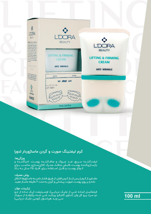 کرم لیفتینگ صورت و گردن ماساژور دار جوان ساز لدورا کر 100 میلی لیتر