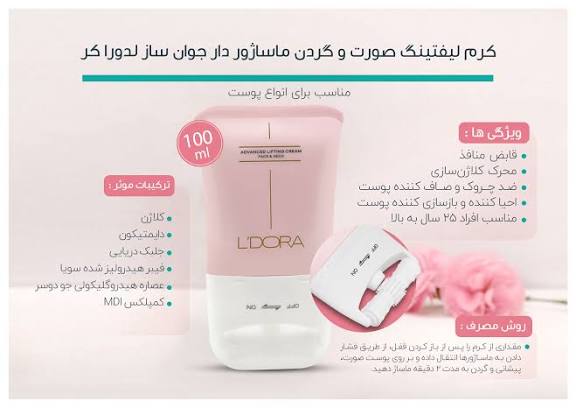 کرم لیفتینگ صورت و گردن ماساژور دار جوان ساز لدورا کر 100 میلی لیتر
